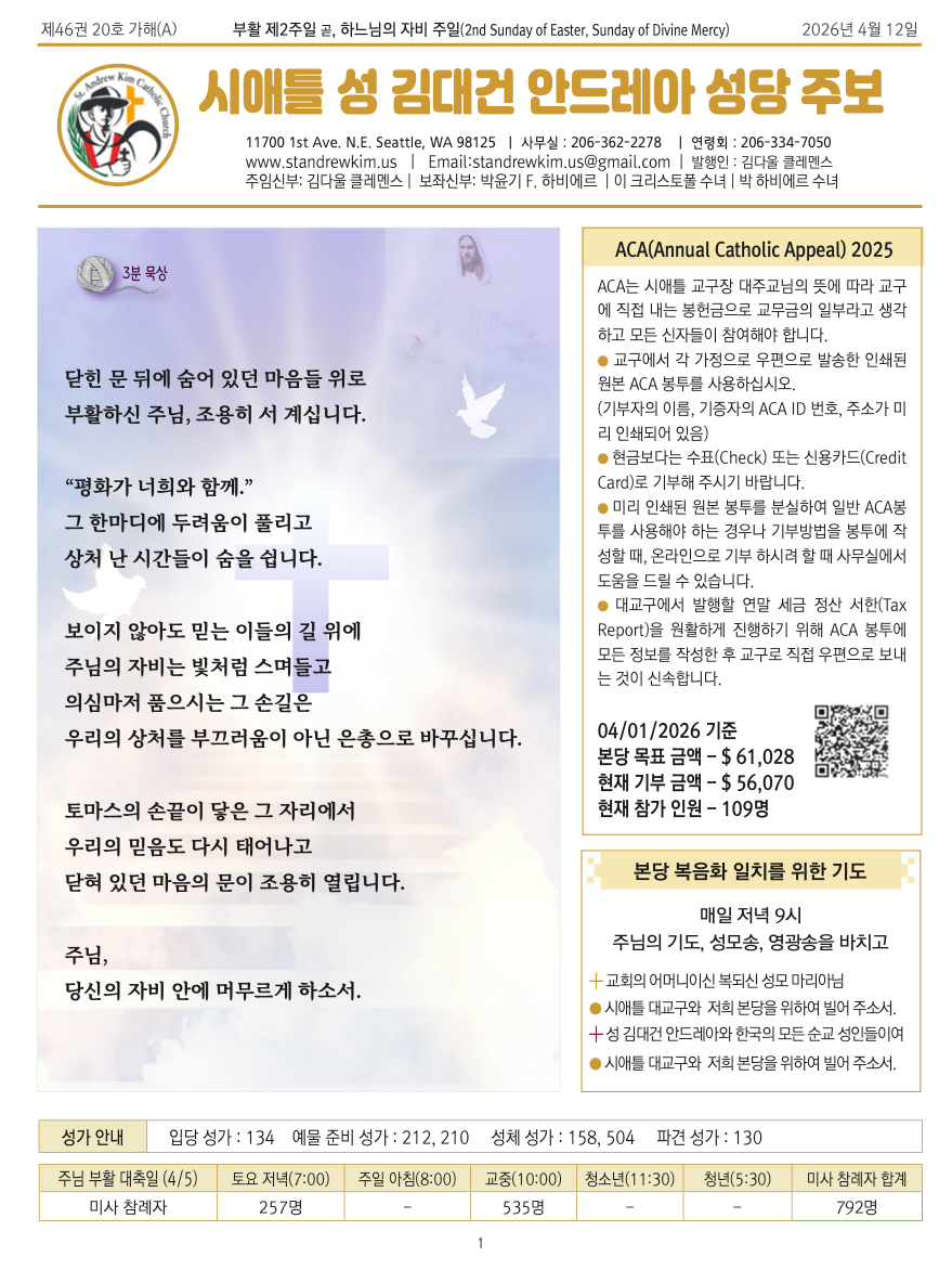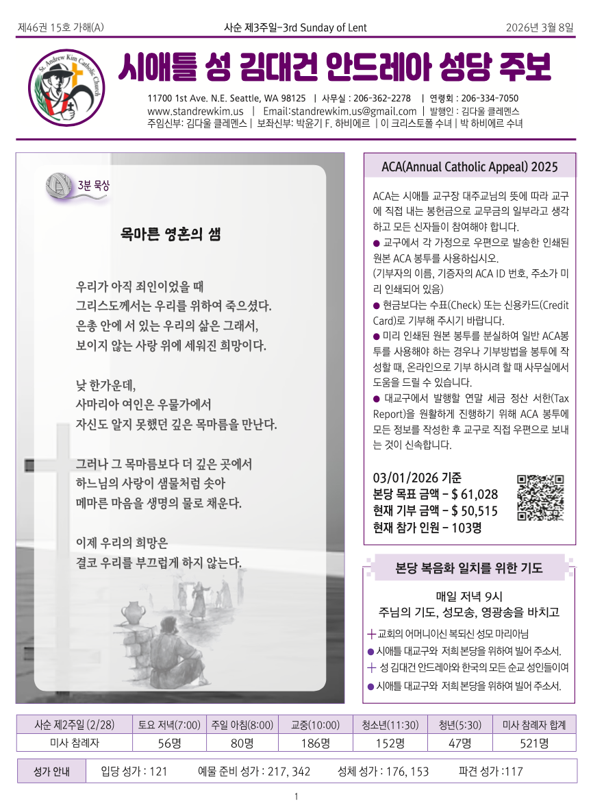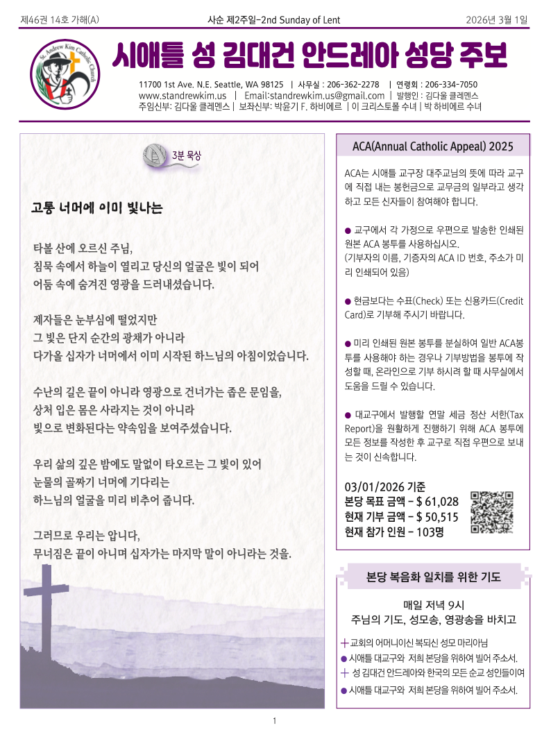 시애틀 대교구와, 저희 본당을 위하여 빌어주소서