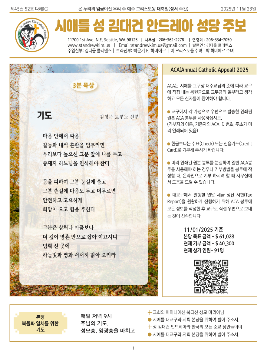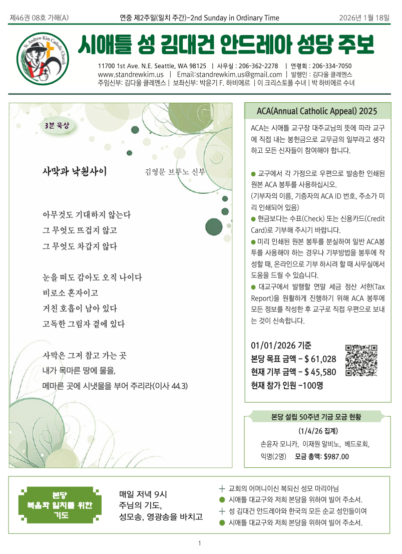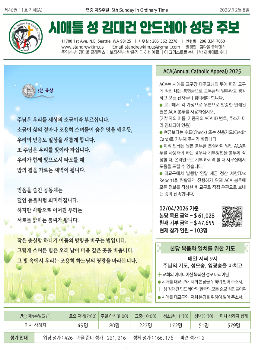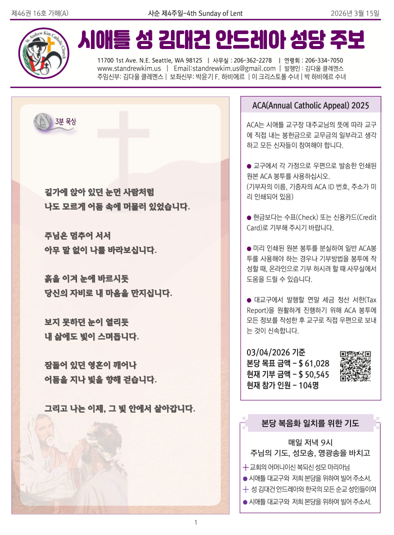 시애틀 대교구와, 저희 본당을 위하여 빌어주소서