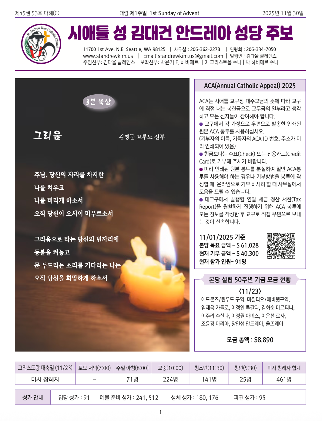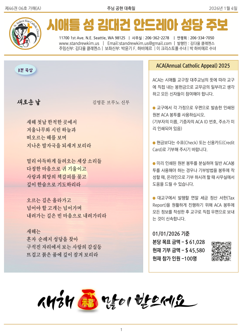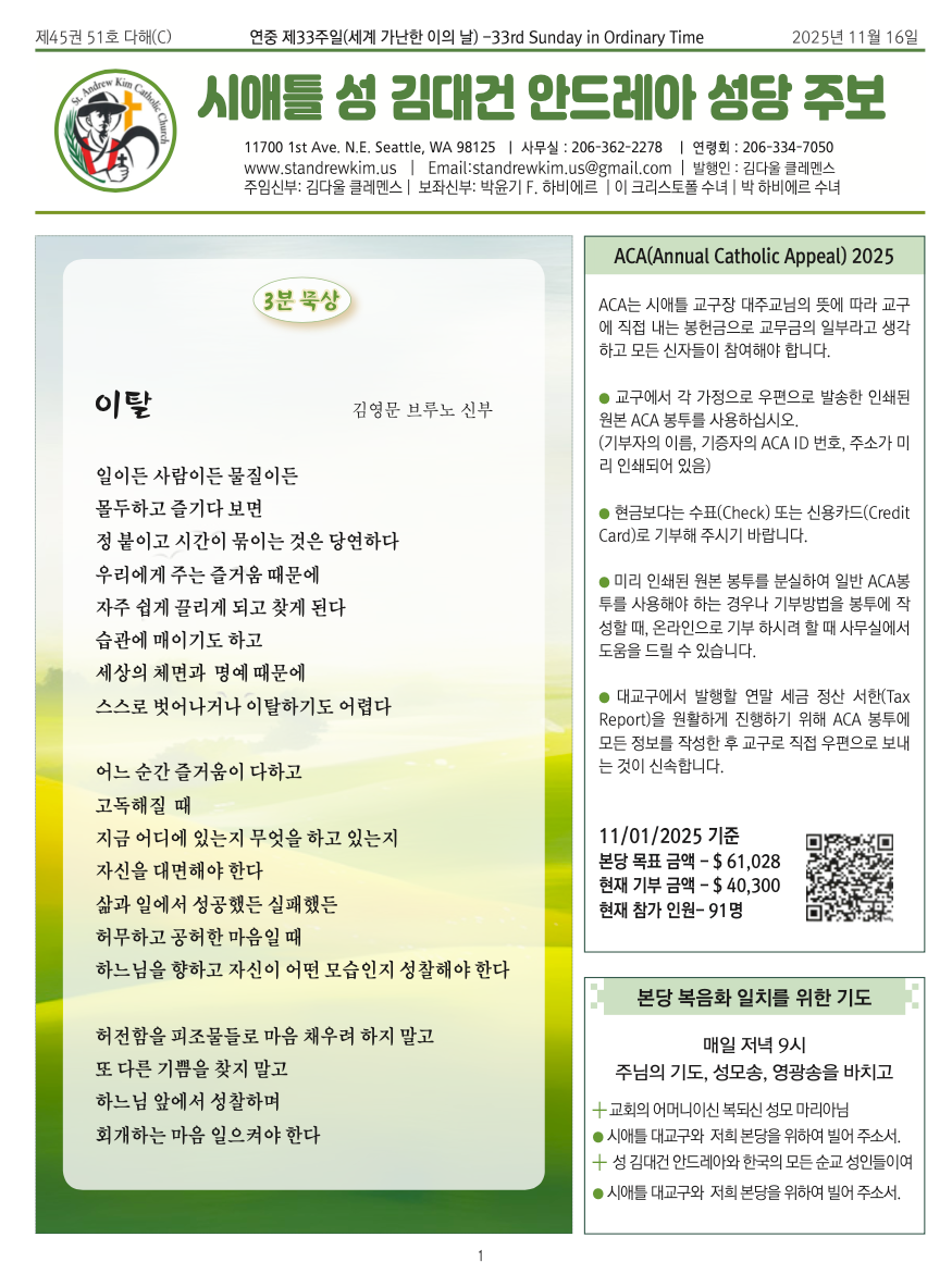 시애틀 대교구와, 저희 본당을 위하여 빌어주소서
